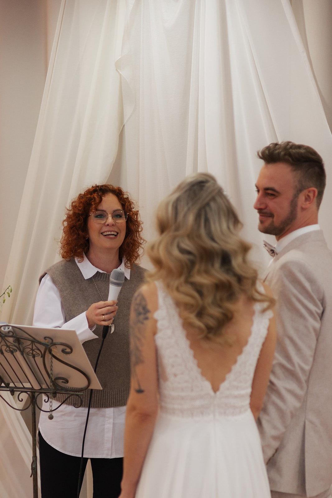 Wenn ihr einen Hochzeitsredner sucht, der das nötige Fachwissen für eine schöne Zeremonie mitbringt, euch aber auch authentisch und mit Hingabe begleitet, seid ihr bei mir richtig. Meine Ausbildung als Traurednerin habe ich mit entsprechender Zertifizierung erfolgreich an der Weddingschool absolviert. Seitdem arbeite ich über die Region hinaus als freie Traurednerin und durfte bereits viele Paare an ihrem Trau(m)tag begleiten.